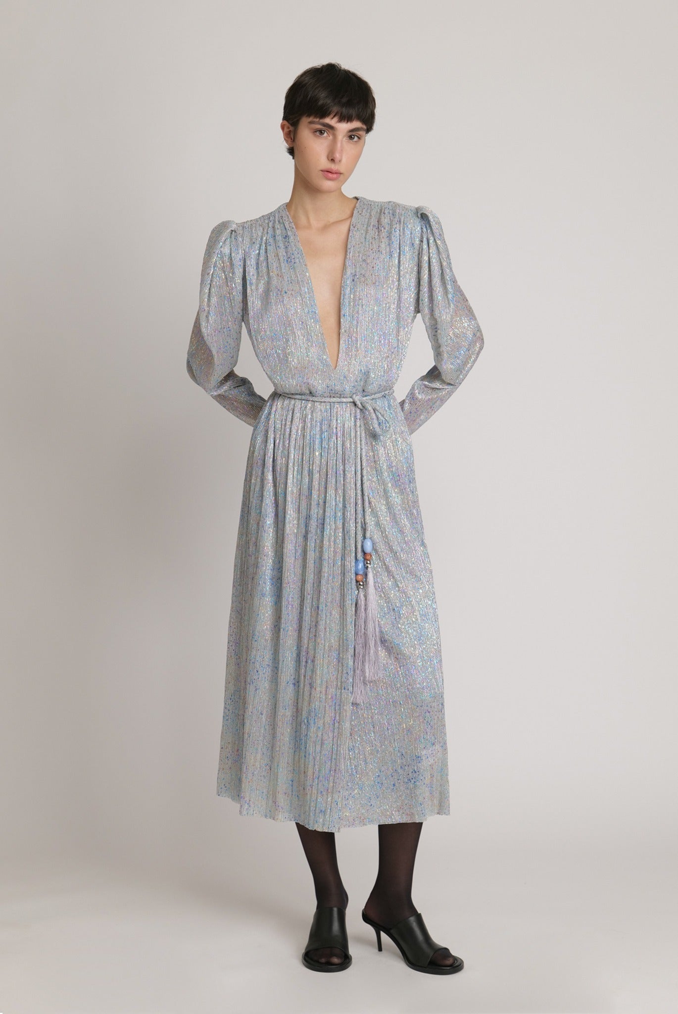 •חגורת נקשרת במותן מאותו בבד.