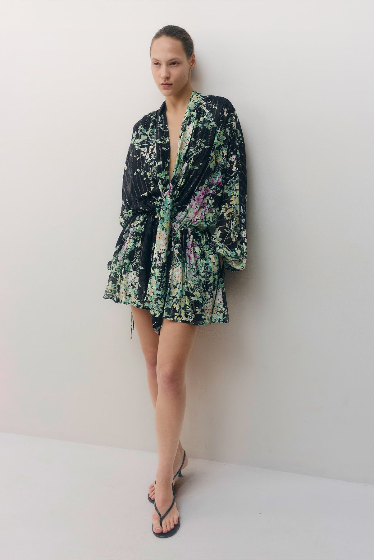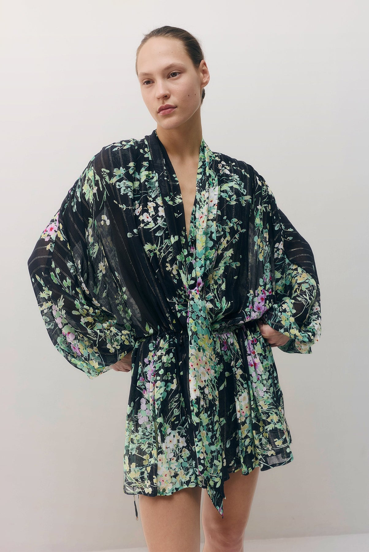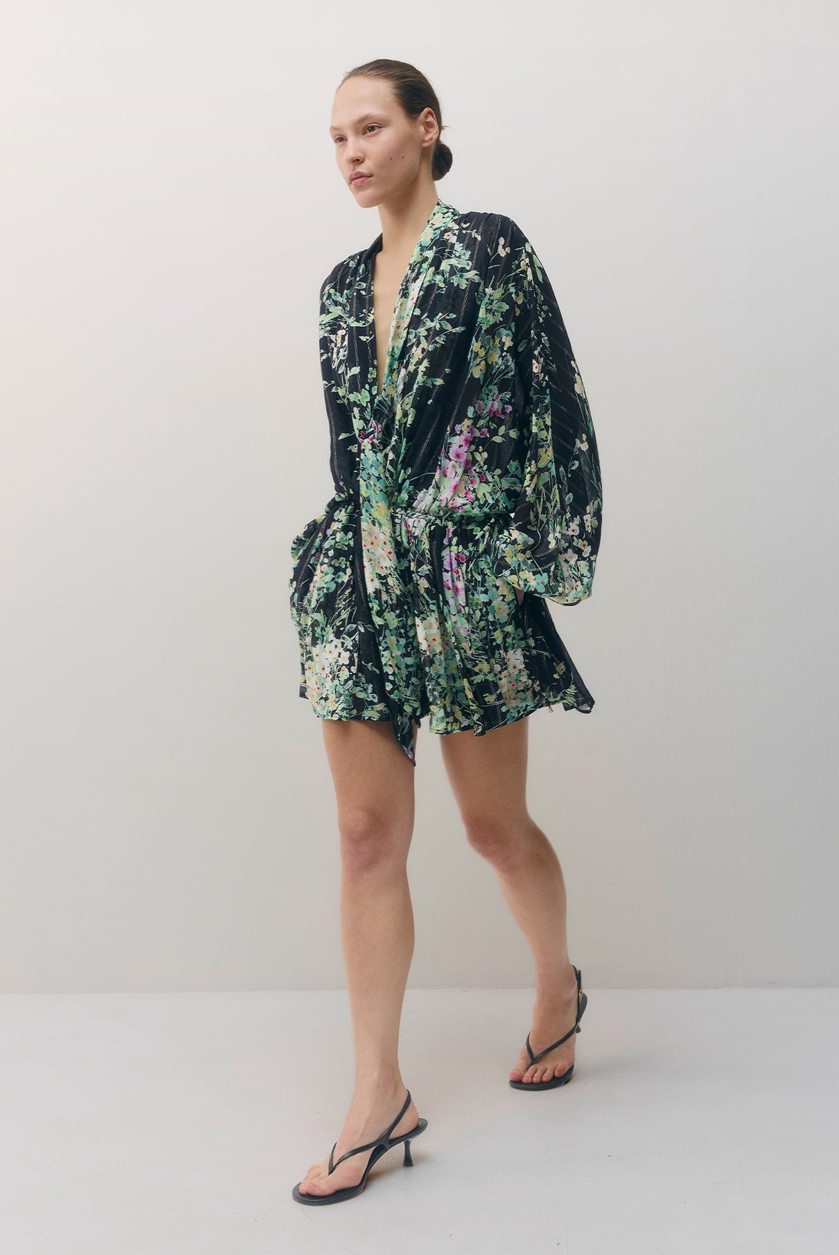 •מפתח וי עמוק עם קשירה וכפתורים.