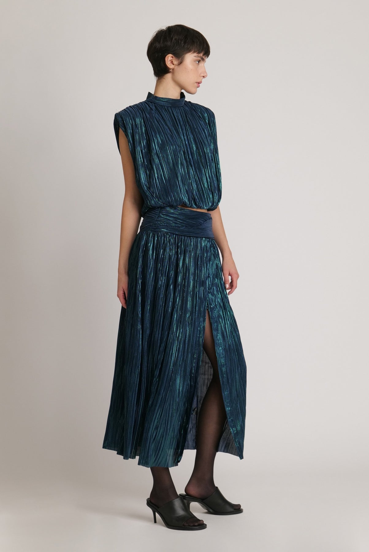 SABINA MUSAYEV - pleated_knit_w_foil_dark_ocean_fw_23_24