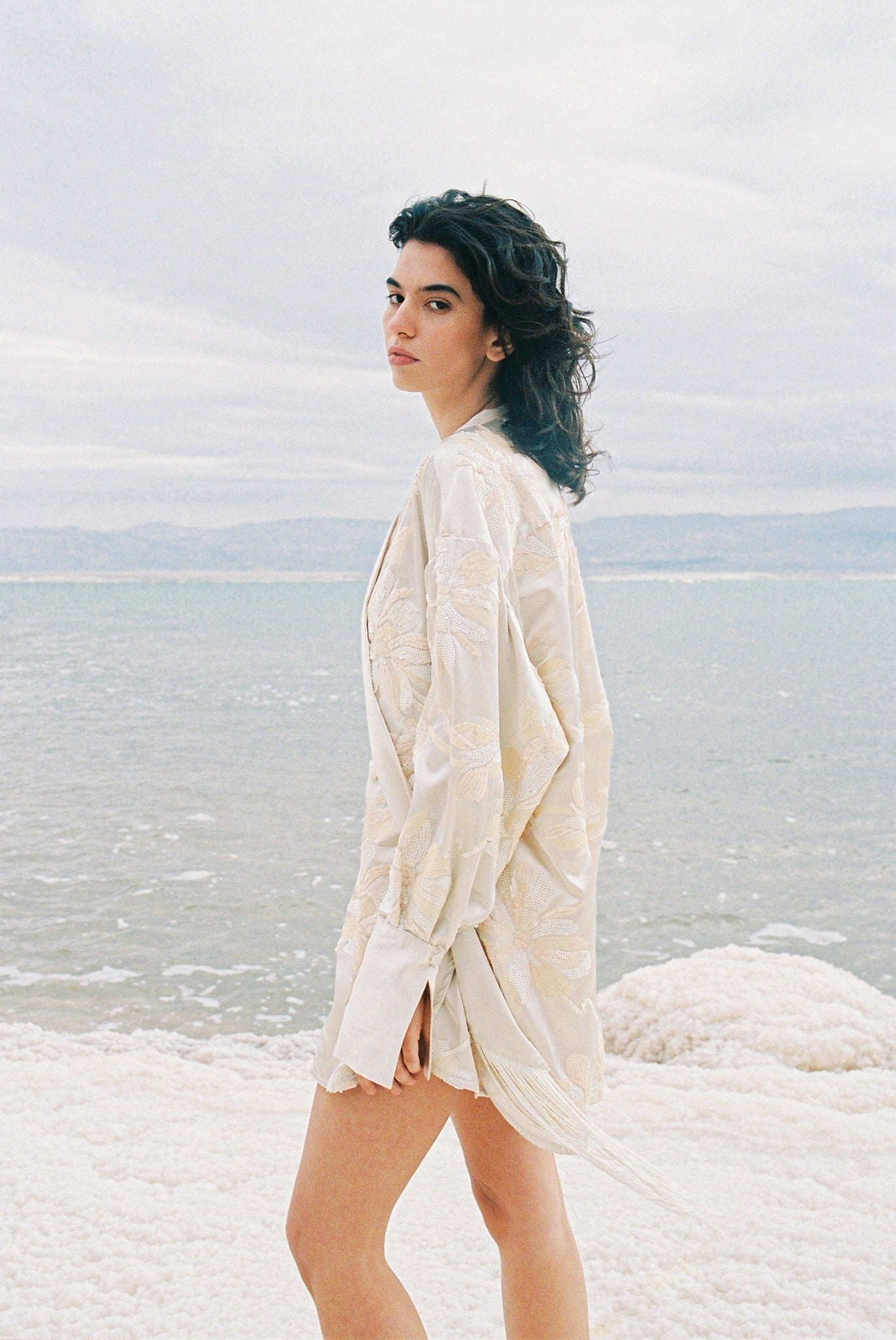 •חולצת ערב מכופתרת מבית סבינה מוסייב.